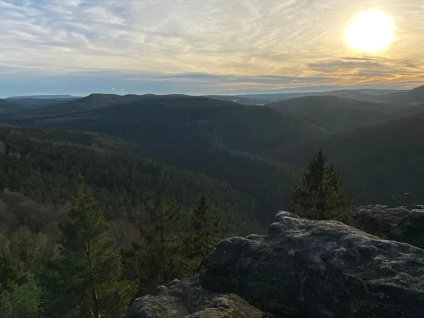 Výchozí bod (Zwieselská větev silnice do Cunnersdorfu z Bielatalstraße) - značení Forststeig - Quirlpromenade - Diebskeller - Quirlaussicht - Kanonenweg - Sterlhöhlen - Forststeig - Unterer Kohlweg - bivakovací místo na Forststeig - výchozí bod.