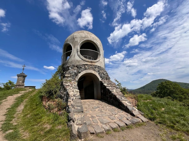 Kostel sv. Pavla a Petra v Růžové - Hutberg - bývalý evangelický kostel - naučná stezka - bývalý větrný mlýn/hřbitov - Kostel sv. Pavla a Petra v Růžové