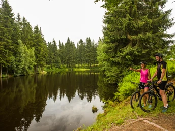 Von Erlbach aus kann man auf dem 14 Kilometer langen Schwarzbachtal-Radweg direkt wieder nach Markneukirchen und Adorf radeln oder über Markneukirchen hoch nach Schöneck.