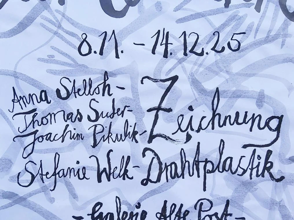 At the center of the autumn exhibition at the Galerie Alte Post is the line. As a fundamental medium of visual art, it outlines silhouettes, creates connections, can be straight, curved, jagged, powerful, or sparse... And it is a means of expression that conveys calm or tension and movement. It can stand alone or condense into complex compositions.