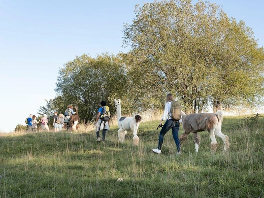 The llamas are on the loose in Schönecken and look forward to hikers who travel with them through the nature reserve of Schönecker Schweiz. This is a treat for all the senses, especially during the wild garlic season. Hikes are monotonous? Guaranteed not with the animal support of the Eifel nomads. Because on a half-day tour through Schönecker Schweiz, participants are allowed to bring llamas with them. The gentle animals feel at home in the hilly nature reserve with its poor meadows. Every two participants share a llama. So there is always a time for the friendly animal while the other has eyes, nose and hands free to look for wild garlic. A llama hike is an all-round experience. During the four-hour tour, hikers can discover the cuddly animals from the Andes, get to know the Eifel again and learn interesting facts about wild garlic and other plants. Of course, the hikers have enough time for photo breaks with "their" llama on the 10 kilometer route. To lead a lama, hikers should be at least 10 years old. Unfortunately, dogs cannot be brought along.