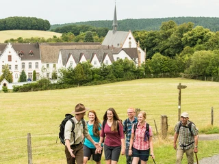 The moderately difficult hike in the Eifel National Park leads from the Mariawald Abbey into the beech nature forests and the habitat of the woodpeckers. It is suitable for children and all-terrain strollers. Duration: 3 hours
