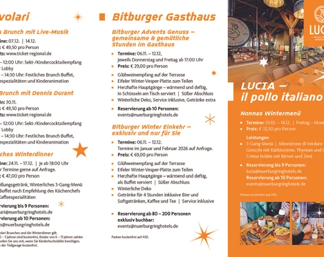 12:00 PM - 2:30 PM Festive brunch buffet and coffee specialties, and children's entertainment