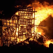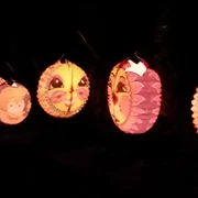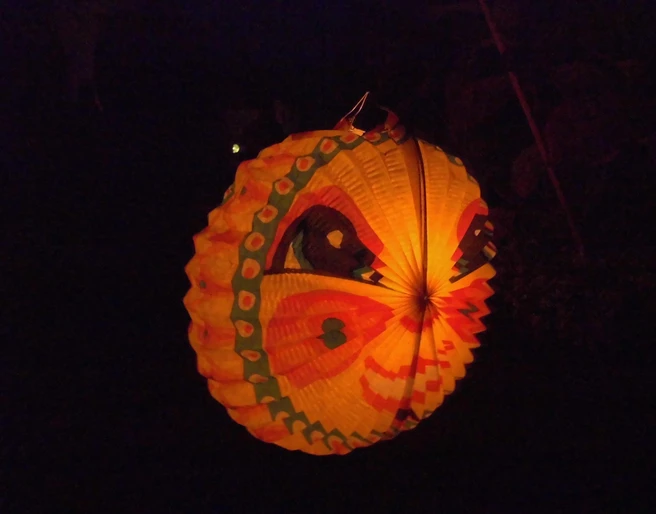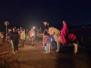 Traditional St. Martinszug where children and their parents walk with laterns along the streets, in front of them a man on horse who plays the roman soldier Martin who later became bishop of Tour ( in France).