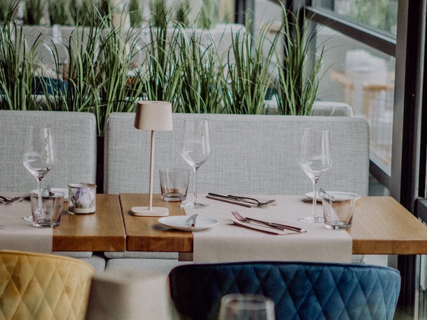 Carl Steamann is located on the Kurplatz. The outdoor area is accessible via a few steps and a ramp. The conservatory at the lower end is barrier-free and accessible at ground level. There is sufficient space to move around. The toilets are only accessible via steps.