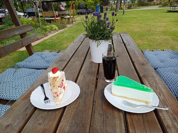At the Hofcafe "Zum Alten Backhaus" you can also enjoy the homemade cakes on the terrace when the weather is nice.