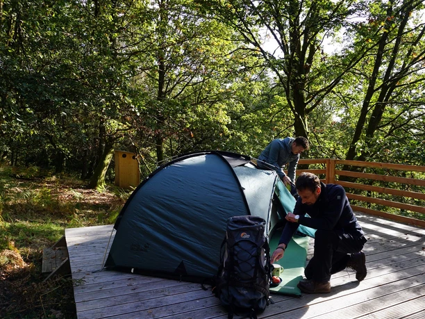 Each camp has two tent sites. A tent site can be occupied by up to two people. Only one overnight stay is allowed per camp. The camps are located away from the villages, hidden in nature and can only be reached on foot. They are not signposted. You have to bring your own water and food.