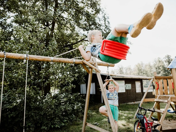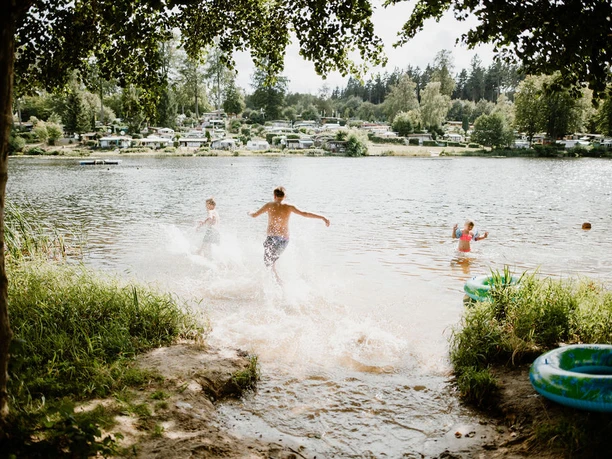 The campsite has flexible pitches for tents and caravans in a natural setting. As there are no fixed pitches, the pitch can be freely chosen and individually arranged. The natural forest floor contributes to an original camping feeling. The lake as well as the sanitary facilities, washing machines and the camping kitchen are in the immediate vicinity and offer additional comfort during your stay.