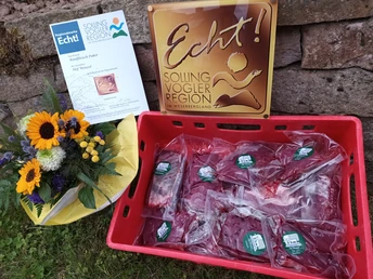 Our products are pre-ordered mixed beef packages, burger patties, beef sausage, cheese grills, meat loaf and steak.Real! means for us ... a piece of regional indulgence!