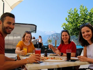 The culinary tour starts in Brunnen. At Lakeside, directly on Brunnen's lakeside promenade, you start with an aperitif (please allow enough time) and enjoy an impressive mountain-lake backdrop. The journey continues by boat, which takes you from Brunnen to Treib. There you have a direct connection to the Treib-Seelisberg Railway. From Seelisberg, it's a leisurely hike to the Rütli meadow.