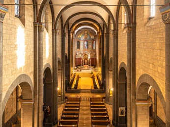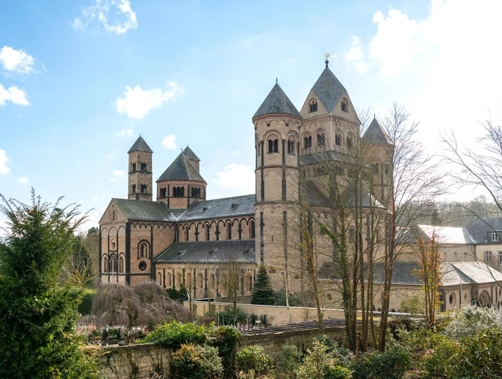 About history Count Palatine Heinrich II of Laach founded the cloister at the lake opposite his palatine castle in 1093. Archbishop Hillin von Trier inaugurated the church in 1156 and around 1230 the last part of the church, the porch, the so-called paradise, was completed. The abbey church is one of the most valuable Romanesque churches in the Rhineland. When the French Revolution was abolished in 1802, the entire church was removed. After private use, the Jesuits established their university here from 1862-1872, until 1892 again Benedictine monks settled in the monastery. Since then, the monastery, which many visitors and guests also visit, has been the place of the monks for their worship and for their diverse work, which is supported by many employees from the region.