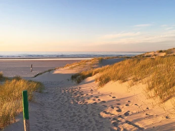 At 650 hectares, Baltrum is the smallest of the East Frisian islands. Only around a tenth of the area is used by the 640 inhabitants. The municipality has no street names, the houses are simply numbered, but it does have three villages. The largest of the three is the western village, framed by the beach promenade, with most of the stores and restaurants, the town hall, the spa facilities and all three churches. The roar of the surf is omnipresent here at high tide. The East Village is sheltered between the dunes and the Heller and impresses with its tranquillity, its flower-filled gardens and its proximity to the mudflats and salt marshes. Some of the original islanders' houses can still be found in the small Old East Village. Here you can get an impression of the island's eventful history. Time, peace, fresh air, pedestrians, bicycles, horse-drawn carriages, children playing and no cars characterize island life on Baltrum. The clocks run differently here, nobody is in a hurry.