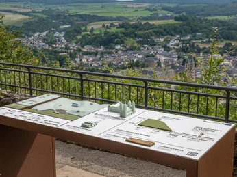 The viewing platform has been barrier-free since summer 2020. In addition, the Liborius Chapel, Echternach Abbey, Willibrord Basilica and the surrounding landscape with its architectural features are "tangible" thanks to a tactile model on the platform, which gives blind and visually impaired people a better idea of the shapes and dimensions of the objects depicted. Distances and height differences as well as the arrangement of buildings can be read off the model with the fingertips. The model is also equipped with braille for blind and visually impaired people and can be driven under with a wheelchair. But the tactile model is also an interesting way for non-impaired visitors to discover and explore the Liborius Chapel and the Sûre Valley with different senses. There is a disabled car park right next to the Liborius Chapel.