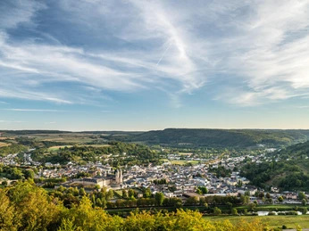 High above the Sûre Valley stands the Liborius Chapel in honour of Saint Liborius, Bishop of LeMans. The platform in front of the chapel offers a magnificent view of Echternach, the oldest town in the Grand Duchy of Luxembourg, with the famous Willibrord Basilica and the former abbey.