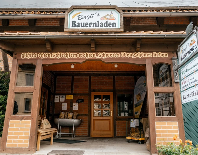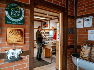 The farm store with adjoining farm is located between Hils and Elfaß in the Weserbergland directly on the B 64. This is also where the feed for the pigs is grown, which is ground and mixed in-house. The pigs are kept on straw and fed a particularly large diet to ensure the special sausage quality.