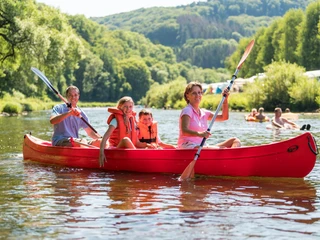 The campsite "Altschmiede" rents out three-person canoes as well as one- and two-person kayaks for three- to four-hour trips. The stretch from Bollendorf to Minden, where the "Prüm" flows into the "Sauer", is around 16 kilometres long and very scenic. As there are only a few gentle rapids, it is also suitable for families with children. A tour takes about 3-4 hours.