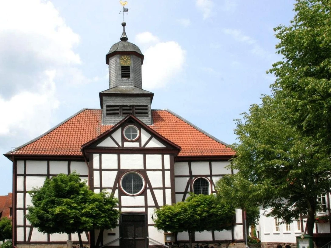 Since 1813, the classicist church has stood in the middle of the village, directly on the Weser cycle path, and invites people from all over the world to visit the church. Be it on Sunday for a service or during the week to look around, pray and sign the guest book on display.