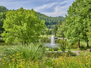 In the 1,280-year-old town with its many quiet and relaxing spots - such as the Dunaris healing spring, the spa park, or the Hotzendrees - one can wonderfully spend a wellness, hiking, or cycling holiday. Here begins the Maare-Mosel cycle path, the famous Eifelsteig, and the Lieser path leads through the town and along the Lieser to Manderscheid.