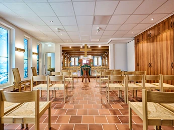 The vacation chapel invites holidaymakers and locals to unwind and find peace with God. The old farmhouse with its family atmosphere is open to people of all ages and denominations to pray, light candles, visit a place of worship and enjoy the many services on offer. The vacation pastor is available for pastoral care at the events. She regularly offers "introductions to meditation" in the meditation room A world store is run on a voluntary basis in the rear part of the building