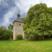 It is located in a spacious churchyard directly on the main road. The path to the church is lined with trees. There is a bee meadow in the grounds and a few scattered benches. At the other end of the bright churchyard there are some old graves and a memorial.