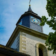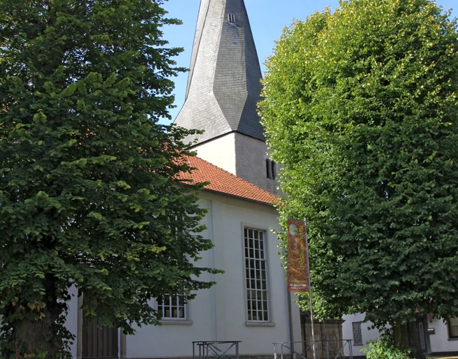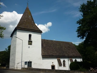 The first documented mention of the church dates back to 1381. During the renovation in 1954, a mural dating from 1564 was discovered, which is a rarity among Protestant churches in Germany. Spread across the vaults, the Passion of Jesus Christ is depicted in twelve pictures. Pictures of the Ten Commandments can be seen between the vaults. The current church is a simple, rectangular building with a square west tower. The originally gray quarry stone building was plastered at the beginning of the last century. (Anette Stadermann)