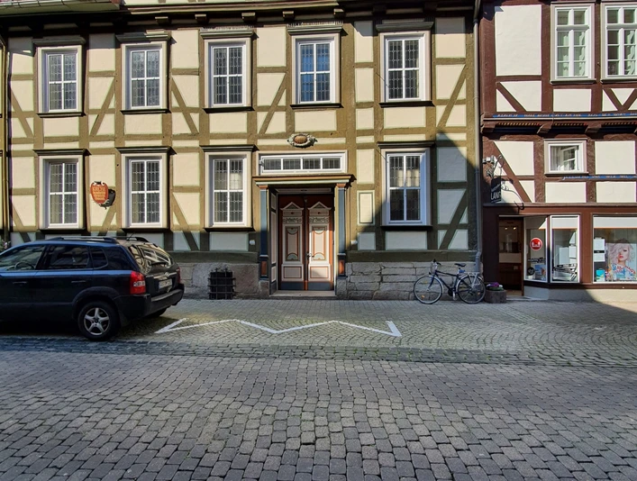 Kostenpflichtige Parkplätze befinden sich auf dem Schlossplatz, ca. 250 entfernt.