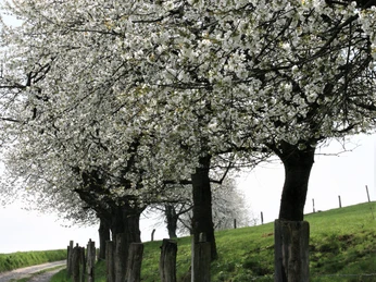 It is not for nothing that this valley bears its name - the Goldbach stream, which meanders through the valley, feeds several trout ponds as well as the mill ponds of the Dallmühle mill at the entrance to the valley. The Kasselmann trout farm is a family business with a long tradition and sells its own fresh trout on the farm. A stop at the Restaurant zum Forellental is a real treat. From there, you have a view of the valley slope on the mountain road with its many old cherry trees - a dream view, especially in spring when they are in bloom, and definitely worth a walk.