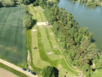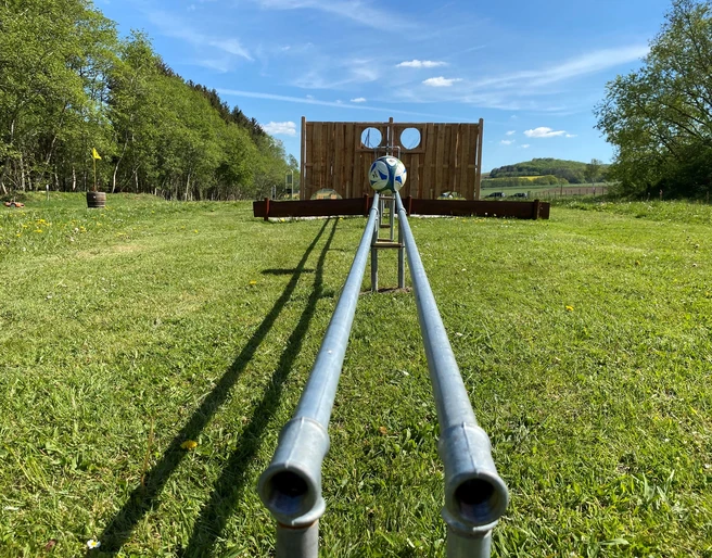 Soccer golf is a ball sport that combines elements of soccer and golf. The aim is to play a soccer through various obstacles and over sloping terrain to the target with as few shot attempts as possible. The target can be holes in the ground, special nets or other targets. Everyone can put their skills to the test on differently designed natural courses. No special equipment is required. The focus here is on having fun and enjoying the experience together.