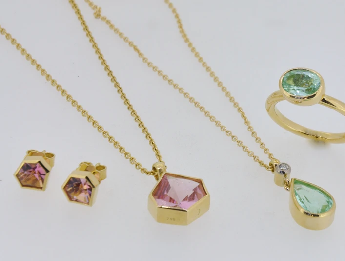 In our goldsmith's shop, we produce unusual pieces of jewelry in gold, silver and platinum with selected fine precious stones and gemstones. We are happy to cater to your individual wishes. We also carry out professional reworking and repairs.
