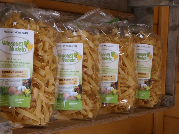 Fresh eggs from free-range hens are sold in a small sales hut (self-service stall). The offer is rounded off with pasta made from fresh meadow eggs, potatoes, egg liqueur and seasonal delicacies. Pop in, bring some change and enjoy.