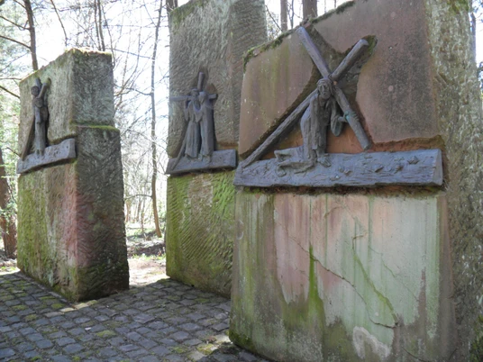 Of the once 14 Stations of the Cross that lined the path to Calvary and were erected around 1776, only the 3rd station remained after the explosion disaster of 1949. It stands on the left side under a mighty chestnut tree, directly at the entrance to the right of the street "Am Ölberg." Dr. Dr. Enders, a citizen of Niederprüm, had the station restored, and it was then placed under monument protection.