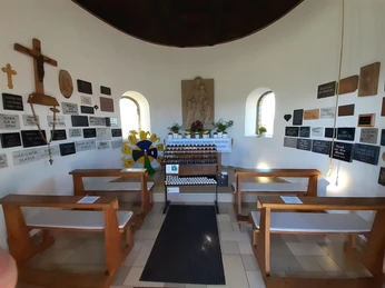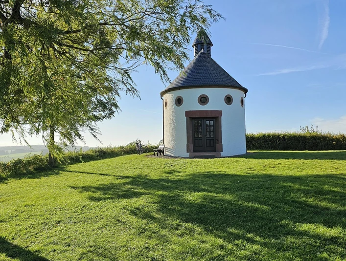 During the Second World War (1944), the people of Steffel vowed to build a chapel to Our Lady if the war would spare their homeland. Already in the summer of 1946, the construction of the chapel began on the 560 m above sea level. NN-located hill Wahlhausen, the inauguration took place in 1947. The oval building is visible from afar and offers magnificent panoramic views of the Volcanic Eifel.