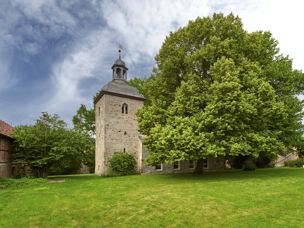 The church in Achim is centrally located in the town and is surrounded by impressive old trees. There is also a monument and a stone grave slab from the 17th century on the large grounds. There is no active cemetery on the church grounds.