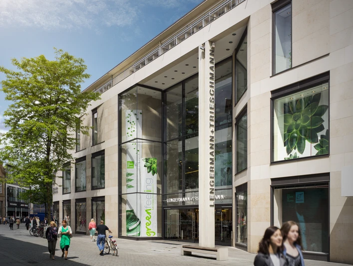 About the history of the fashion store: Friedrich Lengermann & Alfred Trieschmann took over the fashion store Alsberg & Co (1910) in 1935. After the war, they rebuilt the bombed-out building and Alfred Trieschmann's grandchildren, Dieter and Klaus Rauschen, took over the management in 1964/1965. The family business has been growing steadily since 1998 - with the addition of a sports department, enlarged sales areas, the L&T market hall with 12 regional retailers and restaurateurs and an extended multi-storey car park with 480 parking spaces. The store is currently managed by Mark Rauschen, Thomas Ganter and Alexander Berger. L&T aims to be climate-neutral by 2025.