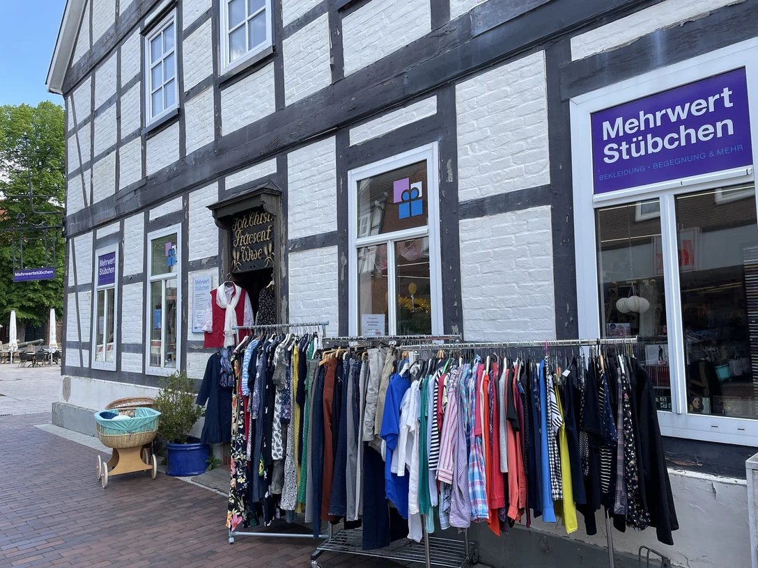 Second-hand items are given a second life in the Mehrwert Stübchen. In the shop of the Lebensraum Diakonie, second-hand items are sold at reasonable prices. The assortment consists of donations.