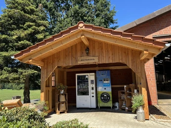 Milk filling station on our farm. Our family farm values healthy and regional food. At the milk filling station, you can watch the cows in the barn and see how they are milked at the milking robots next door. Farm milk direct from the producer.