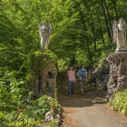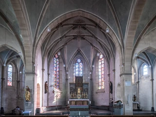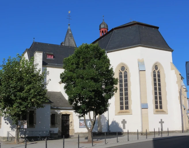 The initial building probably dates from the 10th / 11 Century and was later made extensions and conversions. Worth seeing inside the church restored in 1990: the main chorus of the high altar remains of an altar shrine beginning of the 16th Century and the age-matched figures in the choir, in the aisle of the Pieta and the Romanesque font from basalt. In the area of Tower Hall older murals were uncovered and restored during the renovation. In the outer wall of some basalt crosses of 1828 laid from here cemetery are embedded. The atrium is the rest of the church was destroyed in 1945 by bombs part.