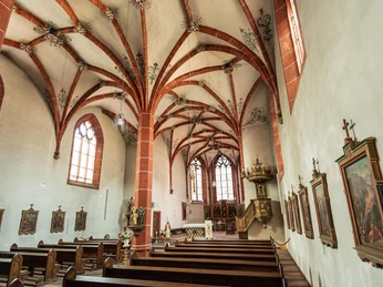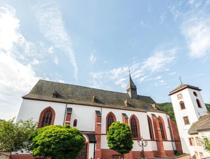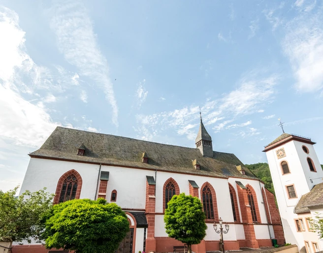 The parish church of St. Nicholas was built in 1492 in the late Gothic style under Cuno II, Count of Manderscheid-Blankenheim, Lord of Neuerburg. It is located in the "Burgfried," a hill below the castle. The two-aisled structure is characterized by its beautiful ribbed vaults and the coats of arms in the keystones of the vaults.