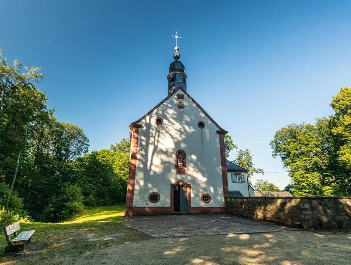 In the northeast of the Ferschweiler Plateau, above the villages of Schankweiler and Holsthum, lies a simple little church in the middle of the woods. Two plaques on the facade provide information about its year of construction; the inscription and the niche figure above the portal point to its patroness: the current pilgrimage chapel Maria Hilf was built in 1762 on the Schankweiler height. It was not the first structure on this site; a chapel with the accompanying cloister was already mentioned in 1648.