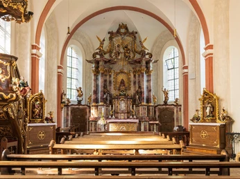 Those who enter the church are amazed: Behind the simple facade lies a rich late Baroque interior. The centerpiece of the main altar is the image of grace, a enthroned Madonna, surrounded by a radiant halo from the 17th century. This is the Mother of Good Counsel, to whom numerous people pilgrimage each year. To the right on the wall stands a black Madonna - the "Sorrowful Mary," around whom many legends have formed.