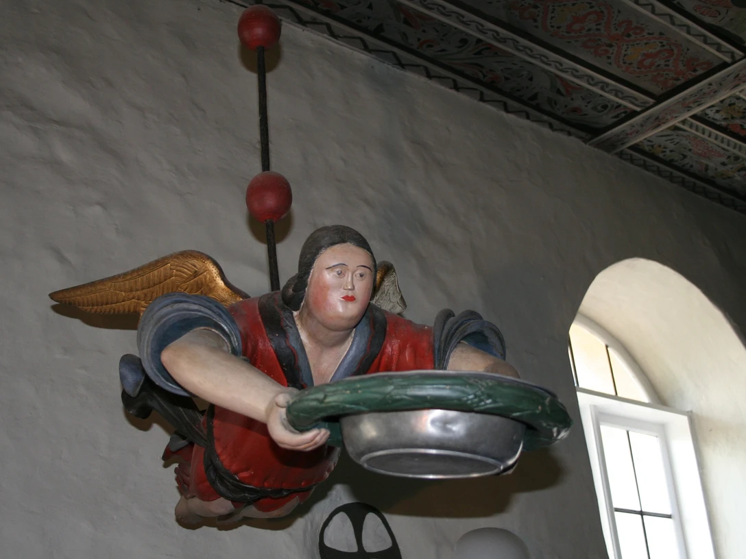 The main room of the Zeetz church, on the other hand, is lavishly painted in places and features a late Gothic carved altar. In addition, one of Wendland's four baptismal angels hovers beneath the wooden ceiling, which is painted with plant ornaments in the Renaissance style.