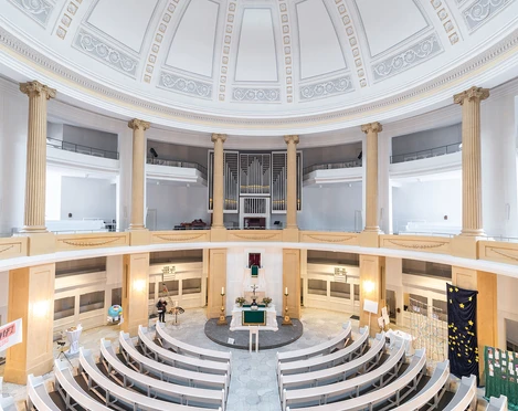 In 1791, however, Duke Peter Friedrich Ludwig had the now dilapidated Protestant house of worship renovated in the classicist style and extended by a rotunda, which is said to be reminiscent of the Roman Pantheon. In contrast to the neo-Gothic façade, the interior of the church is round. The dome opening of the rotunda creates a connection to the sky. St. Lamberti's Church is one of only five round churches in Germany. In addition to church services, musical events such as concerts, for example by choirs or jazz bands, also take place here on a regular basis.Good to know