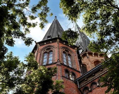 St. Lamberti's Church on Rathausmarkt is something very special for the people of Oldenburg. With a tower height of 86 metres, it is considered the tallest building in the city - with a chequered history: Once built as a Romanesque hall church in the 12th and 13th centuries, it was transformed into a three-nave neo-Gothic hall church shortly afterwards. This style is still reflected in the brick façade. St. Lamberti's Church appears majestic, almost like a castle.