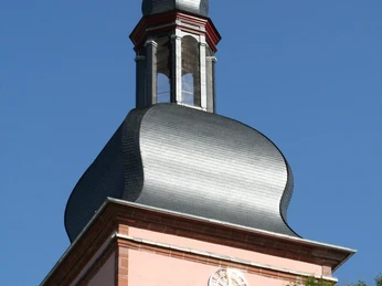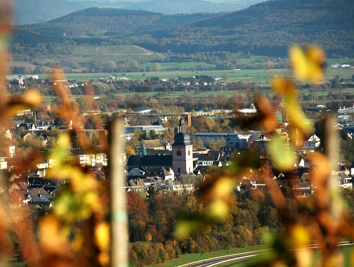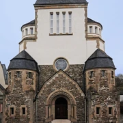 Today's parish church, situated in the historical city centre, was built between 1709 and 1723 by the archbishops Johann Hugo von Orsbeck and Franz-Ludwig von Pfalz-Neuburg and is under the protection of the parish patron St. Markus. However, the church was not officially consecrated until 1727. It is a four-bay pillar basilica in a mixture of post-Gothic and simple early Baroque forms, divided into a main nave and two side aisles. To the west is a three-storey tower with a curved dome that houses the chimes. The high altar was acquired in 1749 from the Dominican Church in Koblenz. The high-quality choir stalls on the south wall were created around 1770, those on the north wall were added around 1820 and both were extended again in 1927. The side altars from 1747 in the side aisles were made by the court carpenter Conrad Fischer. The organ prospect from 1769, made by Peter and Nikel Schreiber, has been preserved. The organ was rebuilt in 1848 by Wilhelm Breidenfeld from Trier and in 1958 by the organ builder Johannes Klais from Bonn. It has 38 stops distributed over three manuals and the pedals. The font was created in 1727 by the Koblenz sculptor Lorenz Staudacher. Among the many figurative works of art that are distributed throughout the church, the wooden figure of St. John the Baptist from the 15th century stands out especially. The freestanding altar table (1971) and the ambo (1976) with its symbolism of the tree of life are works of the sculptor Hans Scherl from Wittlich. The church windows were created after the war between 1949 and 1952 as coordinated cycles. In the northern side aisle they show scenes from the Old Testament (Alois Stettner and Prof. Heinrich Dieckmann) and in the southern side aisle New Testament depictions of saints (Prof. Dieckmann and Maurice Rocher). The choir windows by Prof. Georg Meistermann represent the high feasts of the church year Christmas, Easter, Ascension and Pentecost.