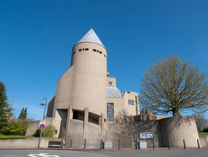 Modern central building by the church architect Prof. Gottfried Böhm from 1968.