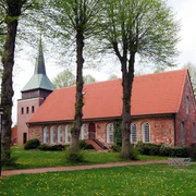 The church was built in 1745-1748 as a brick building in the late Baroque style on the banks of the Oste according to plans by the Hamburg city architect Johann Leonhard Prey. The rococo-style interior, built between 1749 and 1754, was also created by Prey and has been preserved unchanged. With the size of a town church, it bears witness to the prosperity of the farmers and merchants in the Ostemarsch. Around the monumental pulpit altar, the interior is surrounded by a band of 26 trowels, as the partitioned cabinets in the lower nave are called. The altar, organ prospectus and carvings by David Benjamin Opitz and the stucco work by the Martini family from Ticino combine to create a unique ambience. Prey, who worked as a planner and co-builder of the Hamburg Michel from 1751, uniquely implemented the idea of light and lightness of the French Rococo in Osten.