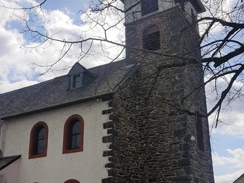 In 1556, the already existing chapel in the early Gothic style in Gipperath was expanded into the church that still exists today. The feast in honor of St. Quirinus is celebrated annually on April 30. There are many legends about Quirinus' life. According to tradition, as a Roman tribune, Quirinus was the jailer of St. Alexander, who converted him and his daughter Balbina to Christianity and baptized them. Under Emperor Hadrian, Quirinus was persecuted as a Christian and beheaded. Devotion to the martyr Quirinus spread throughout Europe in the Middle Ages. The cross on the front of the church depicts the 12 tribes of the apostles. Behind the stone slab are finger bones as a relic.