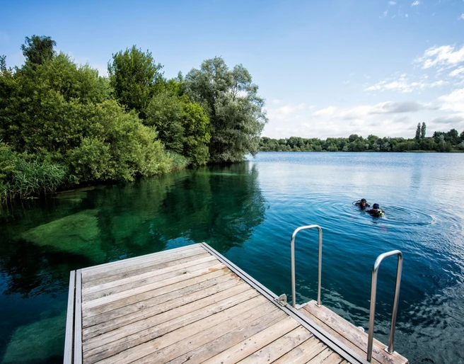 The chalk lake is a diving paradise, up to 60 meters deep, which has been awarded several times as the best diving center in Germany, Austria and Switzerland.