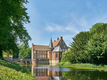 The northern course of the 100 Castles Route delights cyclists with magnificent nature and extraordinary buildings. In the very north of Münsterland, the Münsterland park landscape is more varied than anywhere else in the region - the Ems meanders through the flat meadows and the Teutoburg Forest shapes the landscape with its elevations. On the circular route from Münster via Bad Bentheim, Rheine and Tecklenburg, there is plenty to experience and discover - from the park landscape to the balcony of the Münsterland. Special highlights along the route are Hülshoff Castle, Bentlage Monastery and the double castle complex of Harkotten.