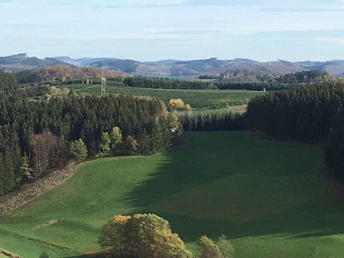 The start is at Stertschultenhof, from here we cross the federal road and go left over the new cycle path towards Eslohe. After 400 m, at the fish pond, we turn right onto the path towards Bockheim along the Reiserberg. After a short climb, we continue to the T-junction and follow it to the next left turn.